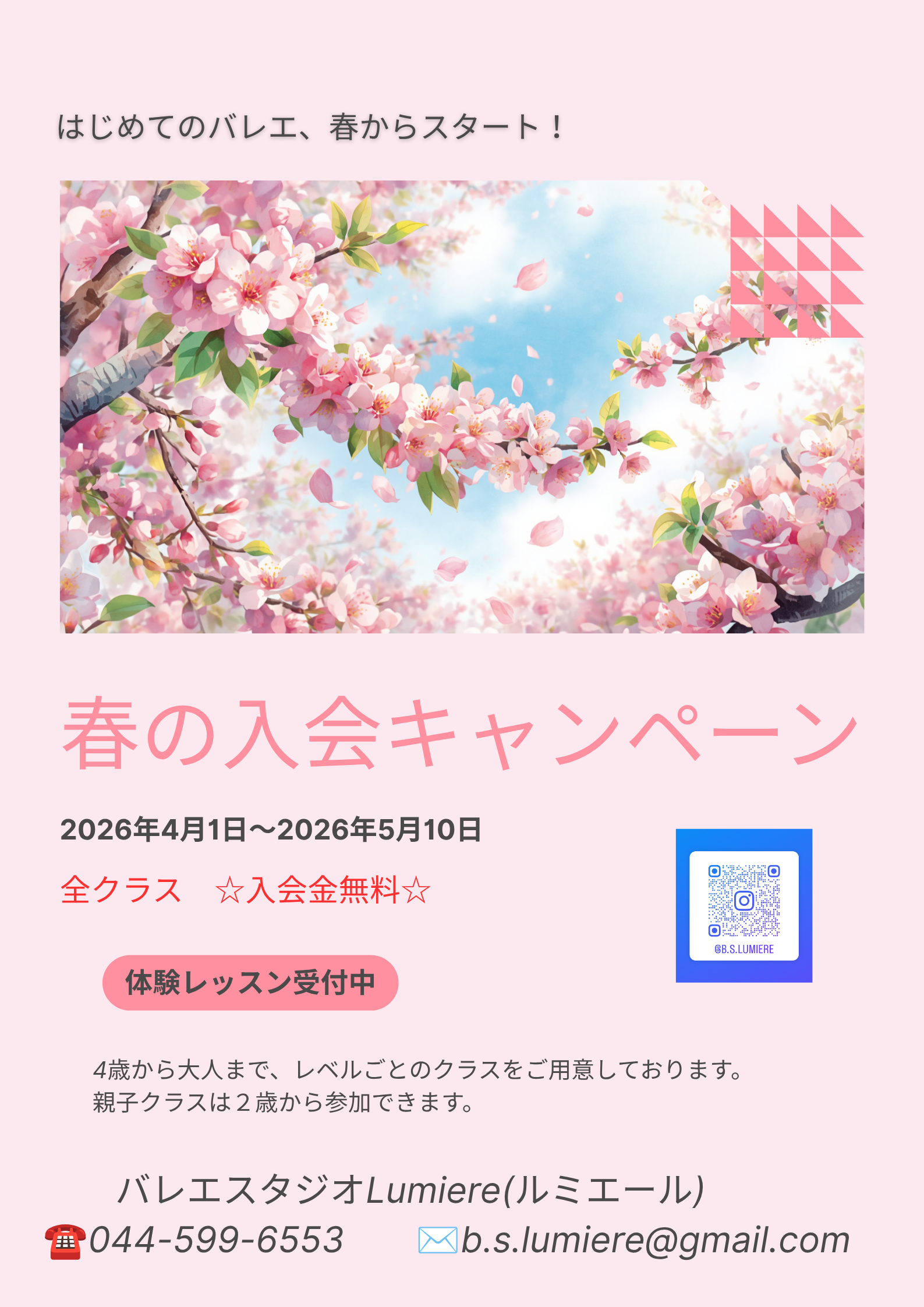 2歳からのお子さんと一緒にバレエレッスンができます!